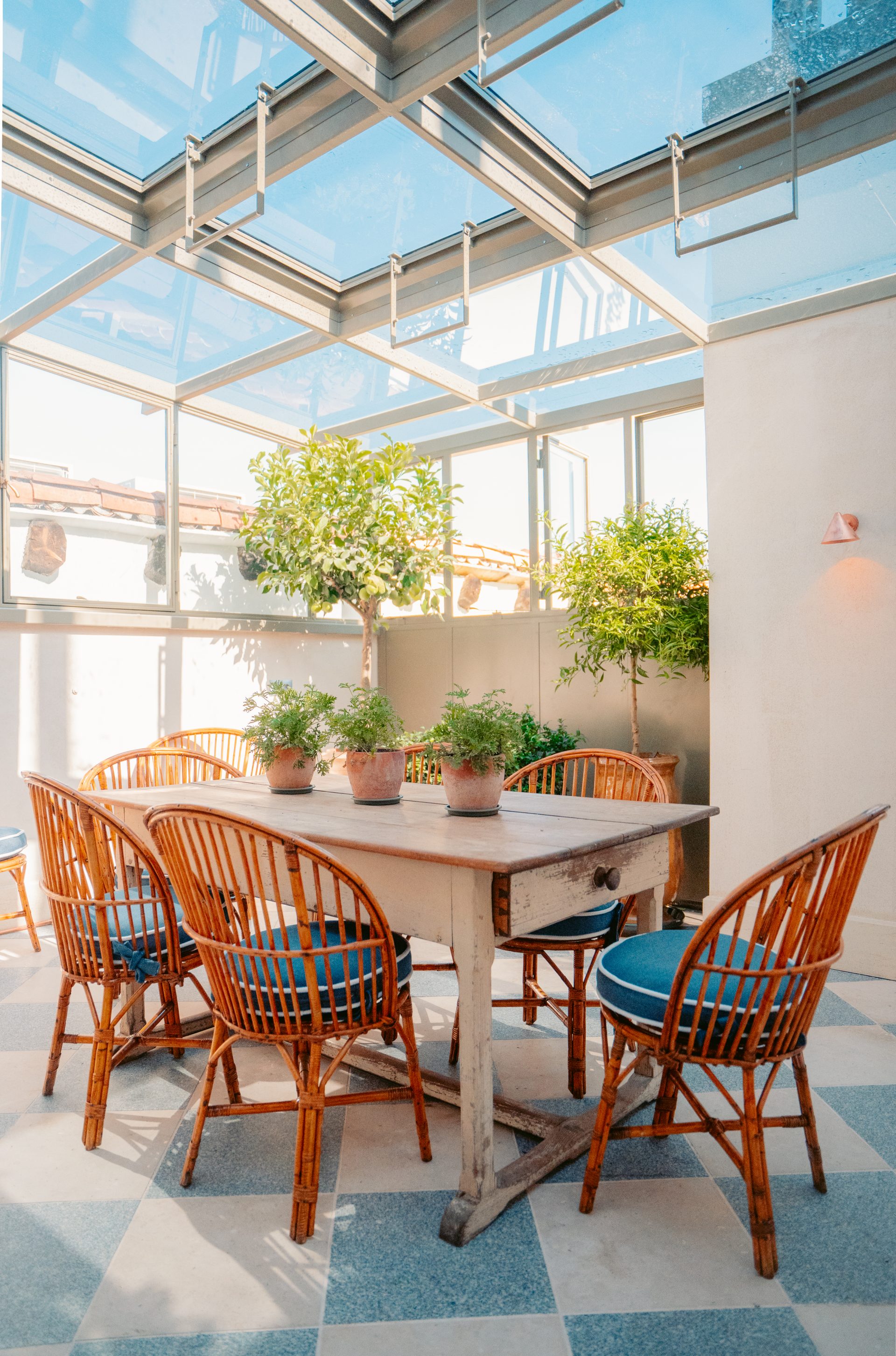 Distribuida en dos plantas, cuenta con 4 dormitorios en suite; aseo de cortesía, salón, comedor, cocina y una terraza de 70 m² espectacular dividida en dos ambientes; invernadero y un jardín diseñado hasta el más mínimo detalle.